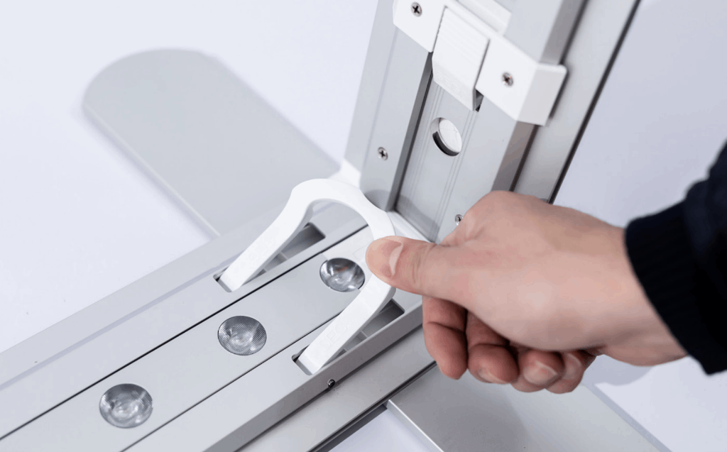 Klicken Sie das Vertikal einfach auf den SEGO-Fuß, indem Sie es nach unten auf den Schaft drücken.